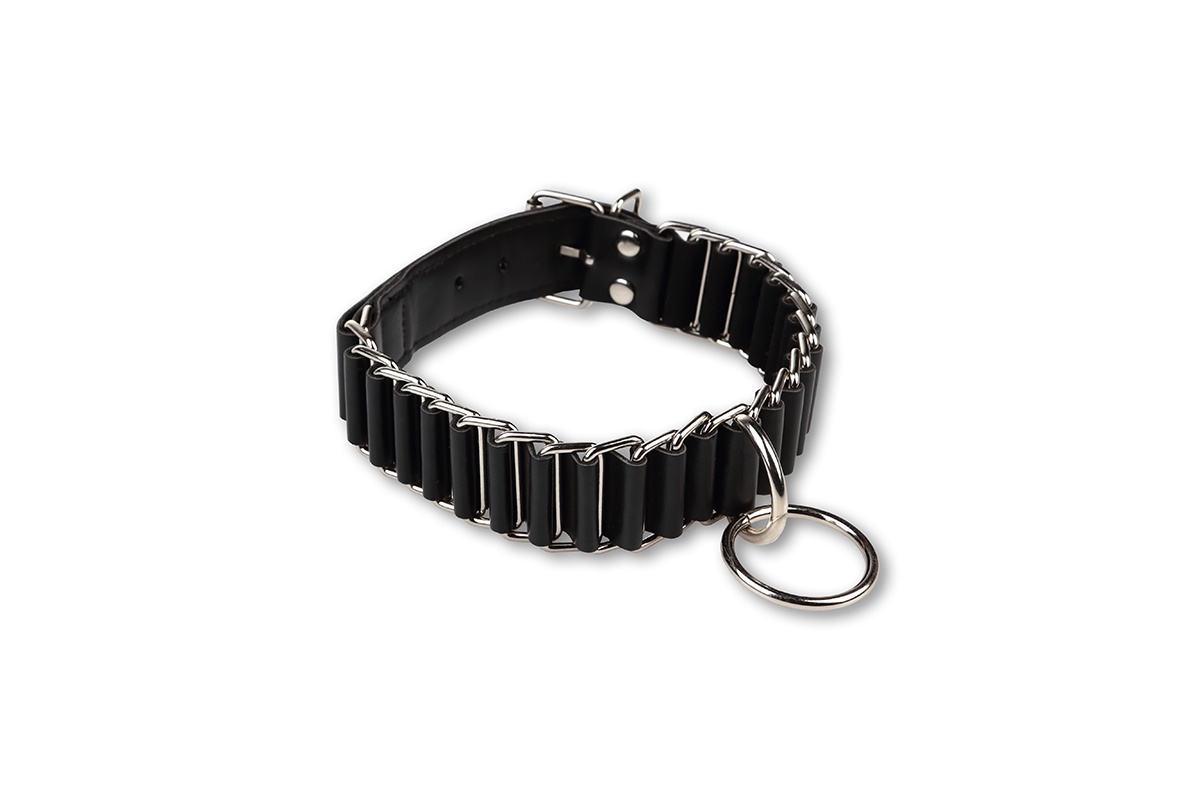 Этот ошейник, изготовленный из высококачественных металлических звеньев, прочный и стильный. Гладкая серебристая отделка придает ему элегантный вид, который обязательно привлечет внимание, а прочная конструкция гарантирует, что он выдержит даже самые интенсивные игровые сессии.