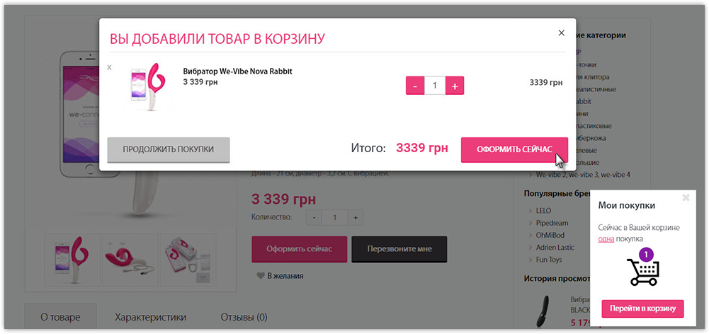 3. Теперь выбранный товар в Вашей корзине. Вы можете продолжить покупки на сайте или приступить к оформлению заказа.
